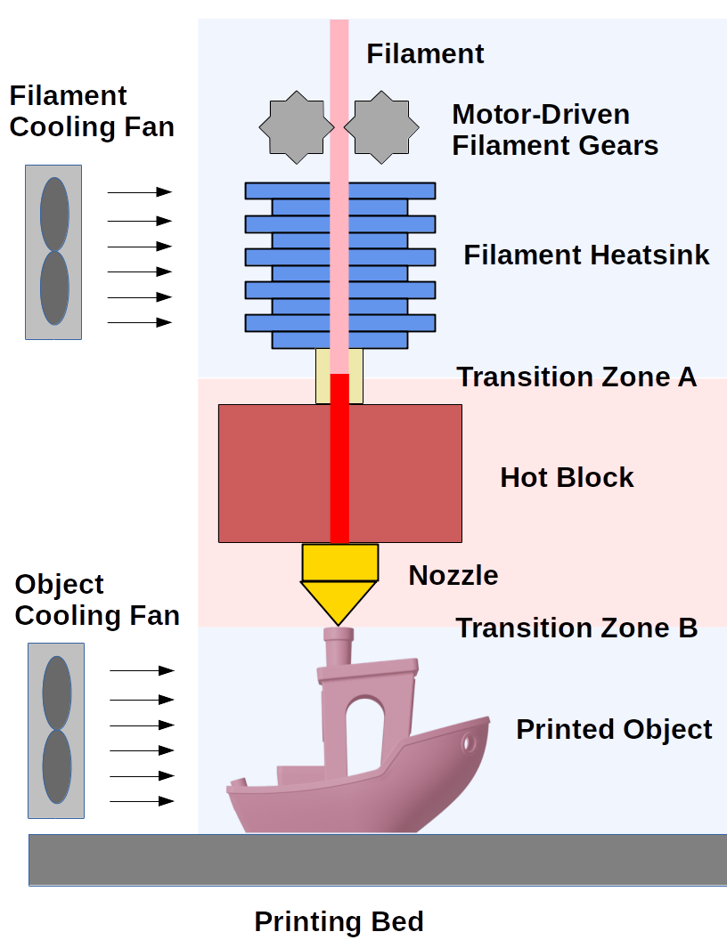 - Transition Zone A is a short gap between the filament heatsink and the hot block. In well-designed extruders this zone is very short and the temperature change is very quick.