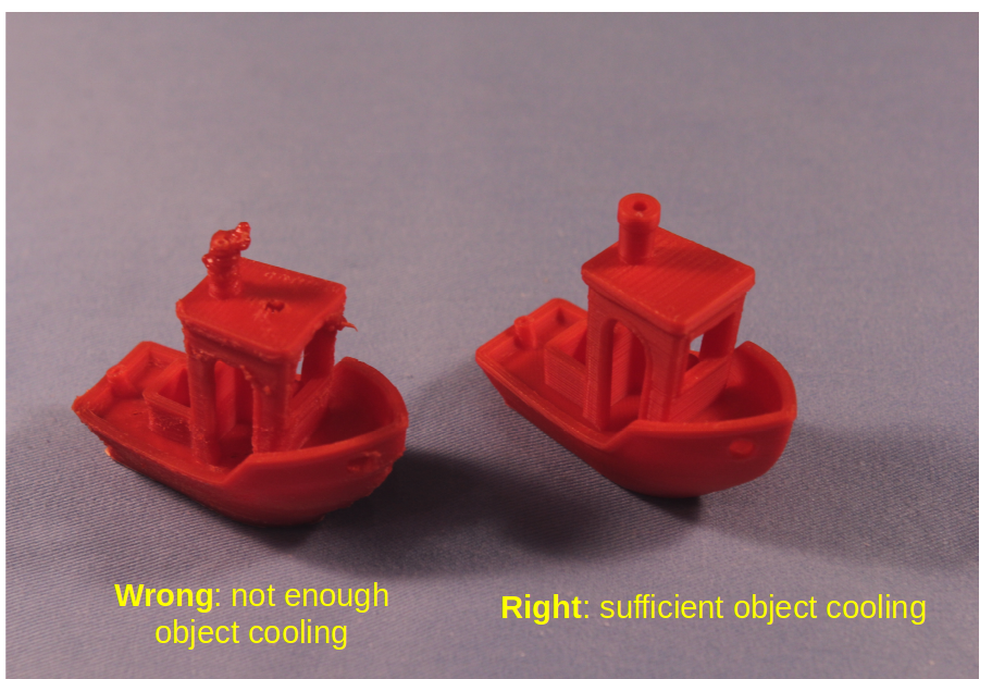 Problems with Transition Zone B object cooling are easily seen in real-world print examples: