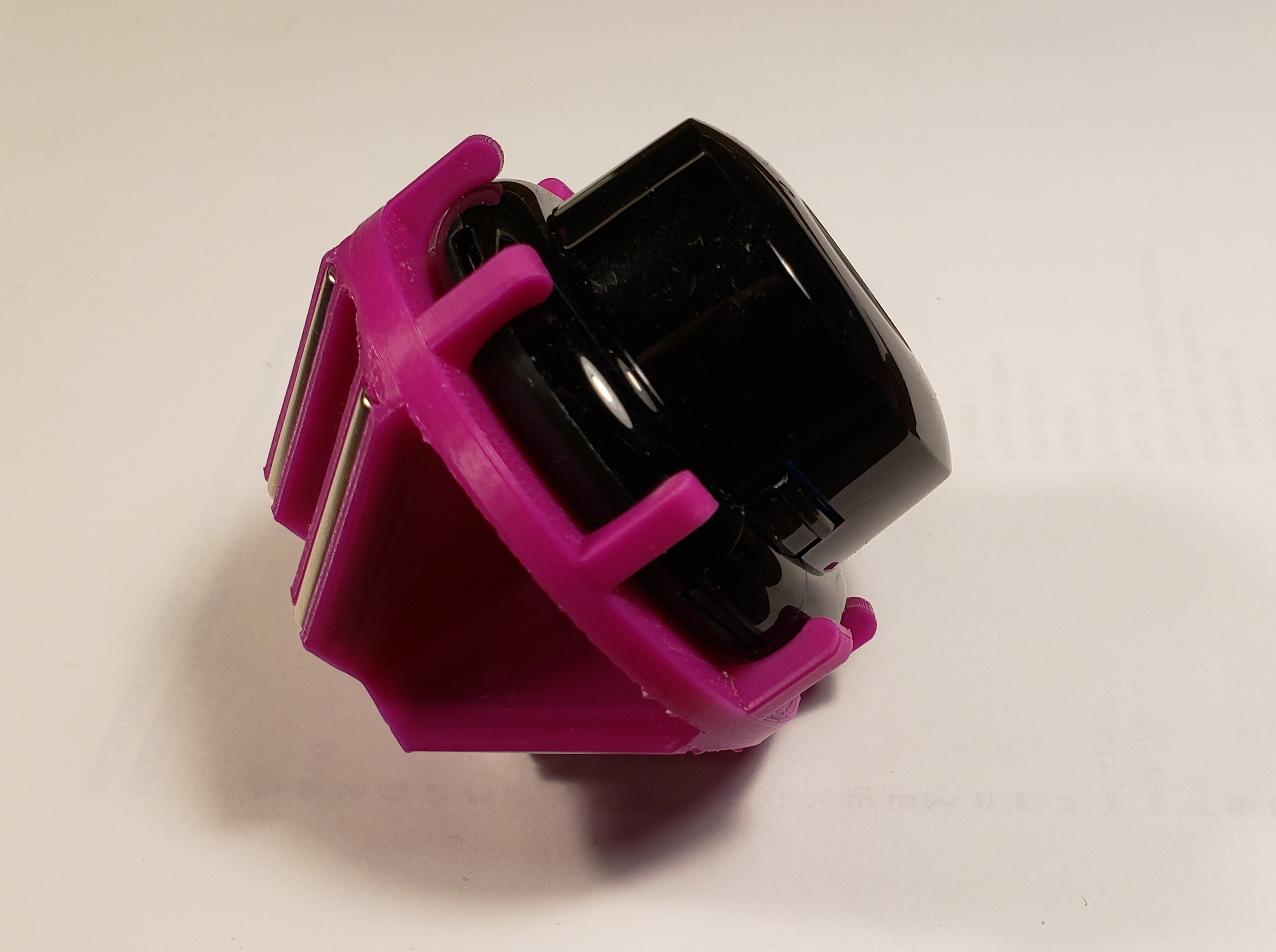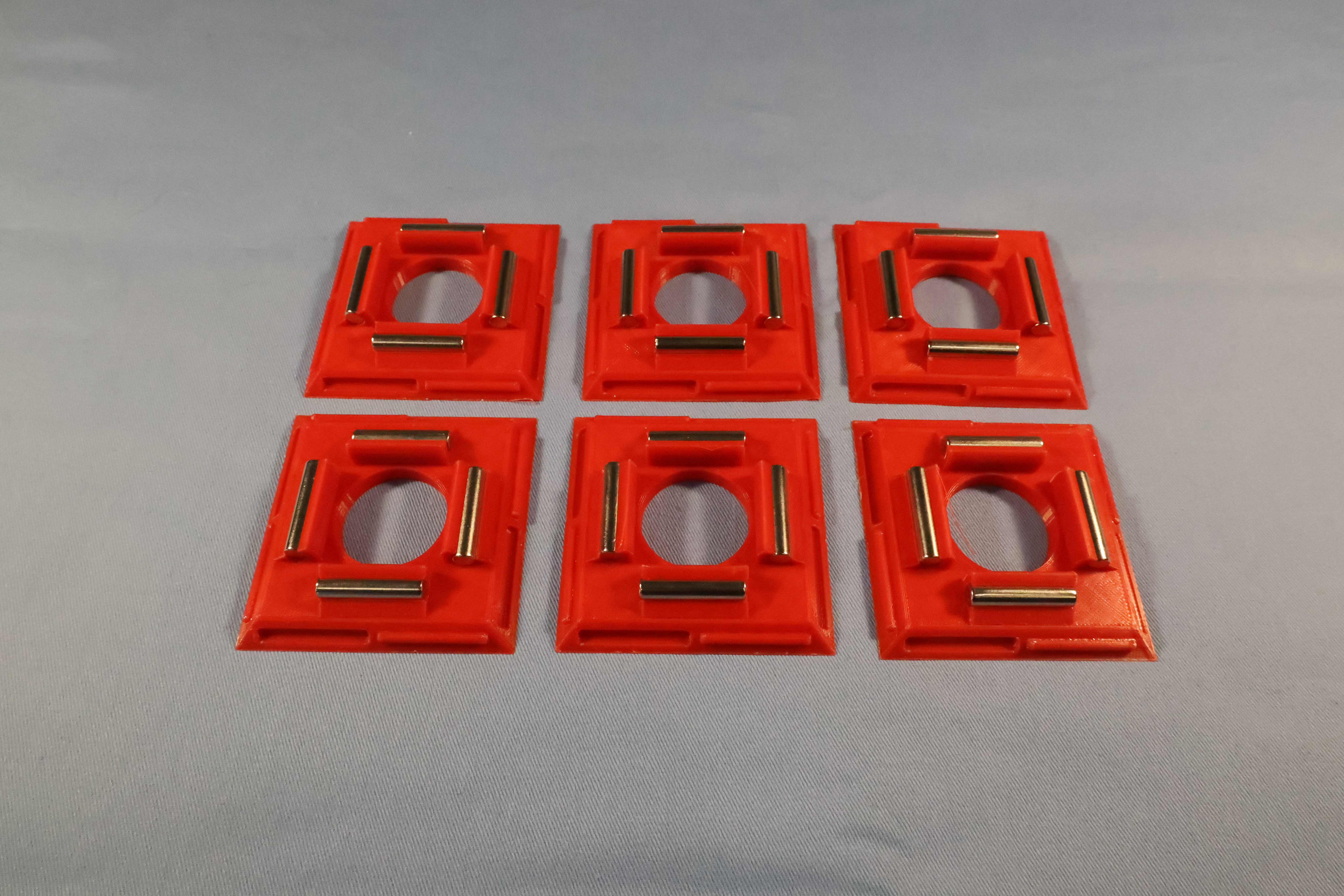 - Slide six neodymium magnets into the slots provided in the 3D printed mount. Make sure all the magnets are inserted with the same polarity, i.e. the magnets should have either their North or South poles all pointing toward the center of the mount.