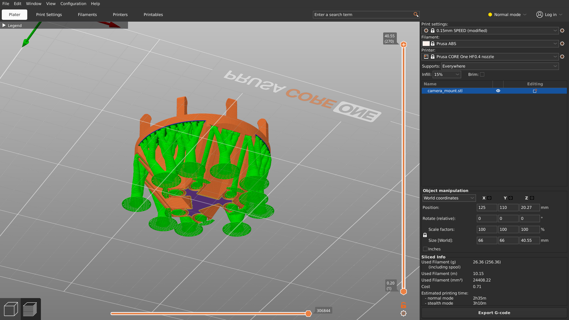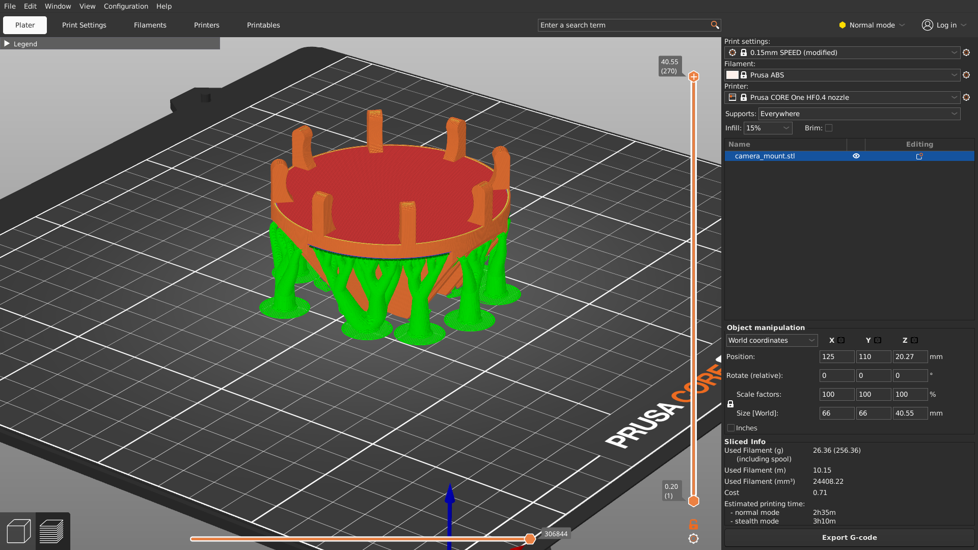 Another PrusaSlicer advantage has to do with print speed. Without inside knowledge of a printer's mechanical properties, a slicer program isn't likely to know how to balance print speed and quality. But PrusaSlicer understands the Prusa Core One intimately and has been extensively tested in order to maximize performance and print quality.