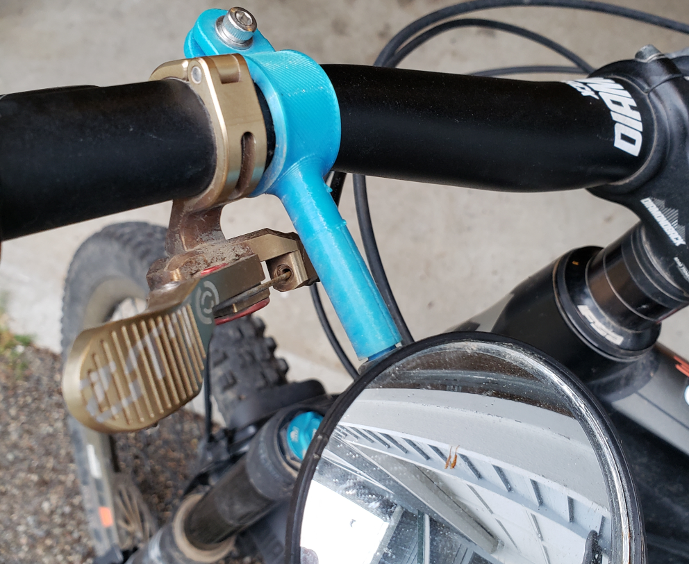Figure 1, at the top of this article, shows the 3D printed bike mirror mount in service.