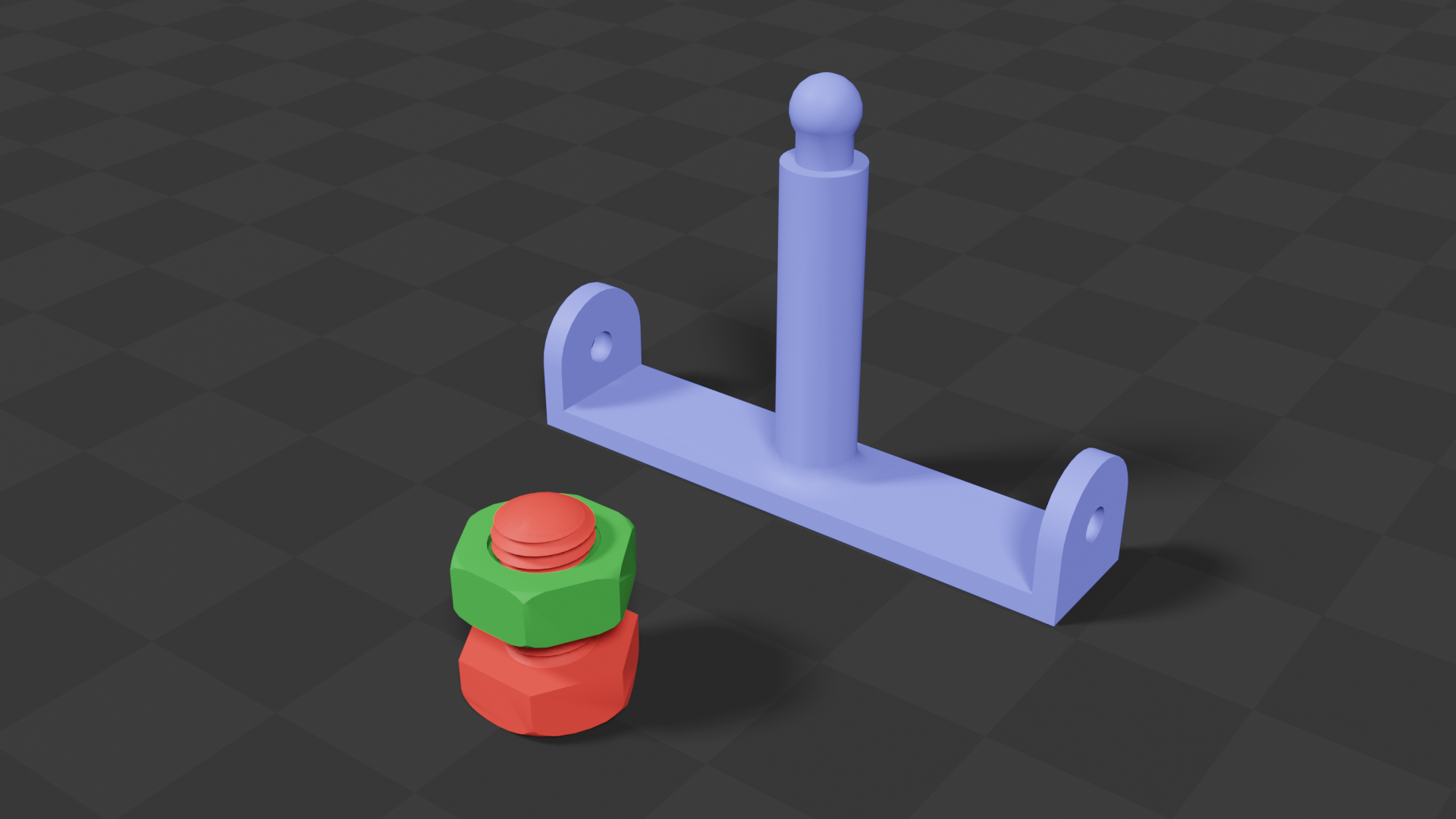 This is an optional but desirable project phase. Figure 7 shows the bike mirror mount project, and another project result (threaded hardware), shown in Blender. This option is useful for discovering size conflicts in parts that must work together, like models of threaded bolts and nuts. I use this preview method to detect and correct dimensional conflicts before 3D printing and other uses.