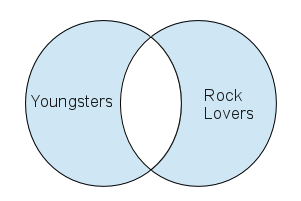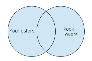 There is one more possibility — a group composed of youngsters, rock lovers, and those who are both youngsters and rock lovers: