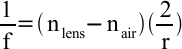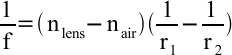 On first examining this equation, the reader may think something is in error, since the two lens radii are subtracted from each other, which would produce zero for a symmetrical lens. But the two radii values are treated using the "Cartesian sign convention," which proceeds as follows: