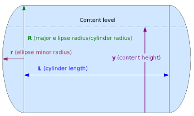 Update: I've been getting a lot of inquiries about oval cross-section tanks, so I have written a Python script that manages this tank type. The script processes horizontally mounted, flat-ended cylindrical and oval cross-section tanks and produces two kinds of tables: sensor height to volume, and volume to sensor height. The user simply enters tank height, width, length, desired table step size, all in consistent units (i.e. inches, centimeters, etc.), and an optional volume conversion factor explained below. For each table type, the program emits a comma-separated data table ready to be pasted into a spreadsheet program for more processing or printing. Click here to see and download the script.