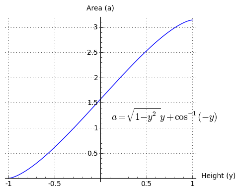Here is the integral of equation (8), which produces an area a for a unit circle section partitioned by argument y (-1 ≤ y ≤ 1):