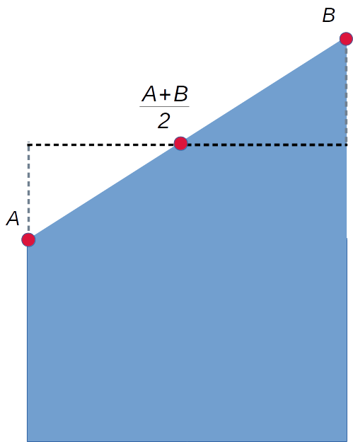 A little geometric thinking reveals that this average value is exactly right if the flow rate changes in a linear way between A and B. If this is not true, if the flow rate value follows a curved path between A and B, then more data may need to be be collected to preserve accuracy.