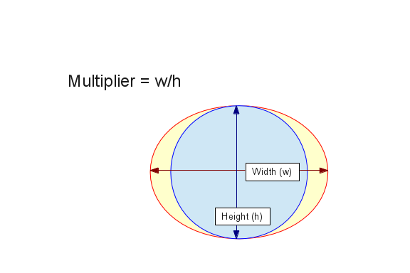 Height Volume % 0.0000 0.0000 0.0000 10.0000 33358.4354 9.8318 20.0000 94520.7965 27.8582 30.0000 169645.9962 50.0000 40.0000 244771.1959 72.1418 50.0000 305933.5570 90.1682 60.0000 339291.9925 100.0000 -i INTSTEPS, --intsteps=INTSTEPS integration steps (only used in horizontal mode), default 1000This option is used to increase the accuracy of the numerical integrator used in the TankProfiler default horizontal mode. For most applications the default number of integration steps is more than adequate. Increasing the number of integration steps increases runtime.-m MULT, --mult=MULT volume multiplier for oval tanks, default 1.0000This is an easy way to acommodate tanks that have an oval cross-section. The entry represents the ratio of tank width to height, like this:As an example, for a tank that is 36 inches in height and 48 inches in width, the provided profile would describe a cylindrical tank with an 18-inch radius (i.e. 36-inch diameter), and the -m option entry would be (48/36) 1.3333... With this option, all the volume values are adjusted to take the tank's width into account, while the height values are correct for the tank's overall height.![]()