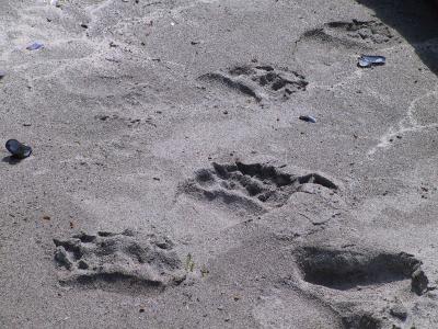 *1 is the fact that, on a typical day in a typical place, you are much more likely to encounter an animal than a person. I can't tell you how many times I have paddled my kayak up to a beach after seeing footprints, only to realize the footprints belonged to a bear, not a person (see below).
