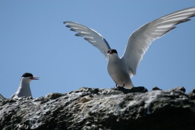 My pictures of Arctic Terns in flight were culled from a vast number of discarded exposures, another advantage of digital photography, where you can press the shutter button endlessly without feeling guilty about wasting film. I love watching Arctic Terns in flight, they are very graceful and they make flying seem like a game only they understand.