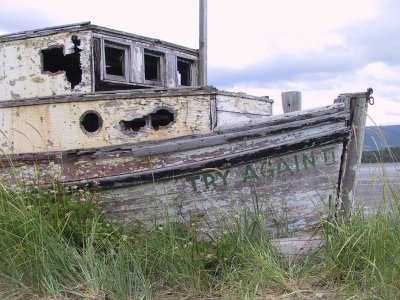 Over a long time, you either give up on a boat and get rid of it, or it truly becomes yours. You end up knowing all its secrets, all its good and bad points. All the space taken up by slick brochures is eventually replaced by some practical hand tool you thought you would never need. And in Alaska, all boats end up on a beach somewhere.