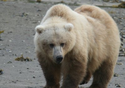 This is George. He's big. He's strong. But he's past his prime, and he might not prevail against Othello. George is also a nearly white brown bear, again showing that you can't distinguish bear species by fur color.