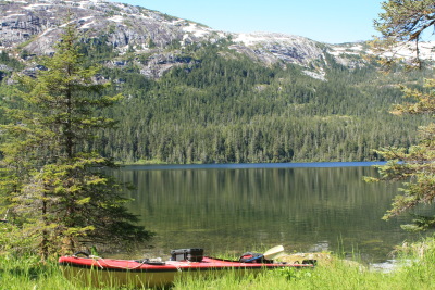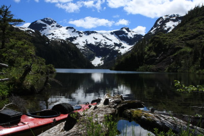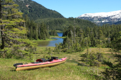 • Unwin Lake, Desolation Sound, British Columbia: Not an Alaska location, but one of my favorite fresh water paddles. Paddle to approximately 50° 7.4' N, 124° 41.4' W, to an obvious trailhead. This is the one location on this list where a set of wheels is essential. Go ashore and wheel your kayak along the trail to the lake. The lake itself is actually in the approximate shape of a horseshoe, with two large bodies of water joined by a small passage. Because of the difficulty of getting a boat to the lake, you will very likely have the lake to yourself.