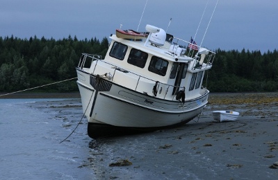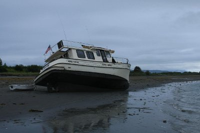Until this season I've never beached a boat, and I rarely allow my boat to drag while at anchor. I normally set my anchor in a strict way, motoring in reverse against the anchor to make sure it can hold the boat, and raising and resetting the anchor if I don't like the result. I am particularly careful about anchoring when I visit the wilder bear areas along the Alaska Peninsula, where people who go ashore tend to be eaten.