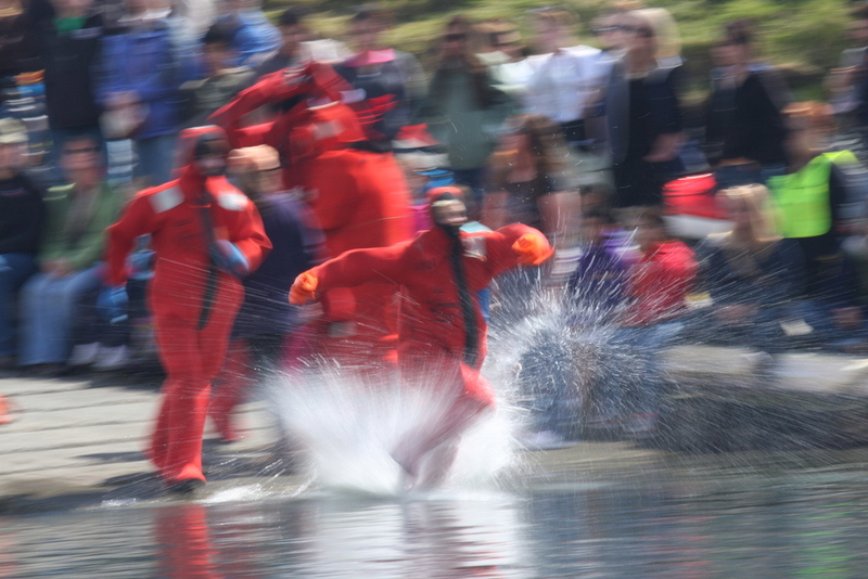 Contestants hit the water in Kodiak City's annual survival suit race