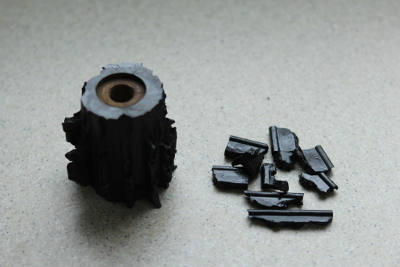 Figure 4: The generator pump impellerWhen I first acquired my present boat, I didn't fully appreciate the problems impeller pumps cause. One morning I departed an anchorage with the house-power generator still running to charge my batteries. At that time the generator's raw water intake port didn't have a screen, it was just a bare opening, vulnerable to blockage. I passed over some seaweed, the intake port sucked it up, this blocked the water intake, the pump went dry, the impeller disintegrated, the cooling system failed, and the generator overheated and shut down — all in three minutes.