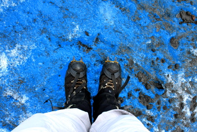 Notice the "Ice Limit 2002" sign at the right. Notice also the near-complete absence of vegetation in the foreground, which is terrain only recently exposed to the environment from beneath the glacier. In 2008 I explored the surface of this glacier, when it was much larger than it is today (and extended across the small bay shown above):