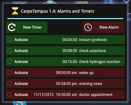 - CarpeTempus is a complete, powerful Android alarm/timer application.