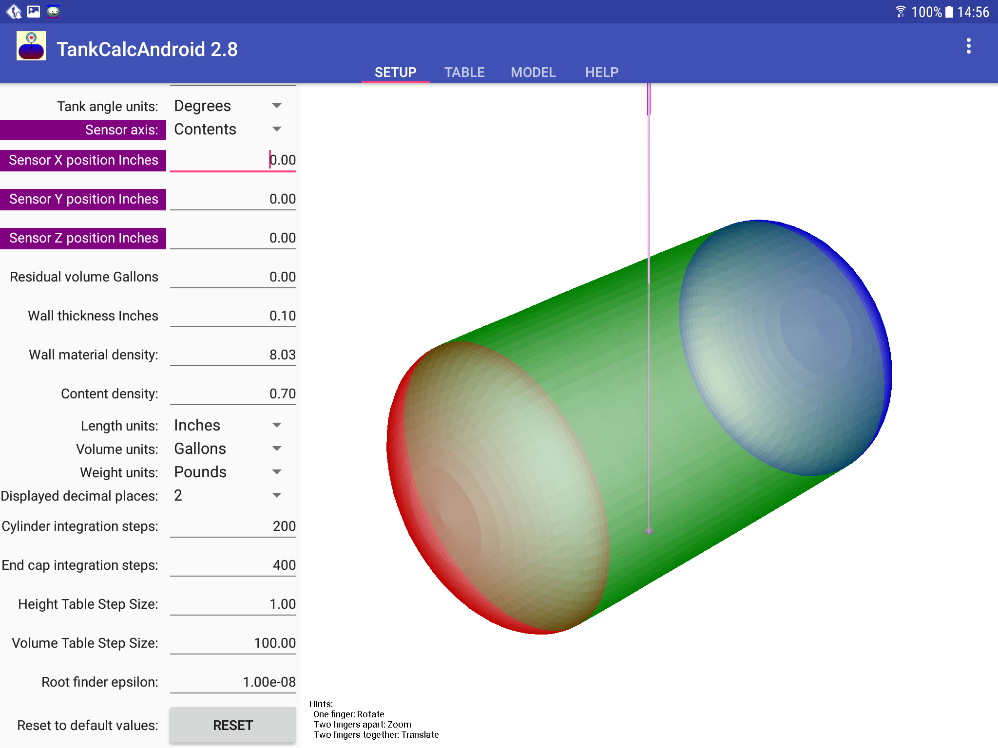 TankCalcAndroid is an Android-based version of my well-known storage tank analysis program TankCalc. I created it on hearing from a number of tank farm managers who wanted a more convenient way to analyze storage tanks in the field. This version includes most of the features of the desktop version — the table generator, the 3D viewer, even the