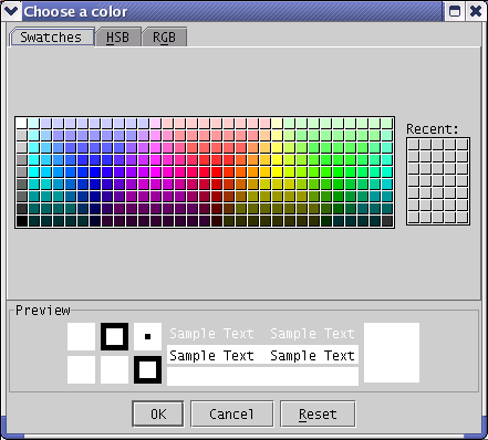 Using this dialog, you can choose a new color and press "OK," or press "Cancel" to leave the color as it is.