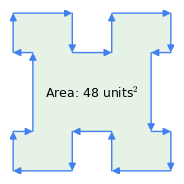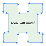 - "Clockwise Rule": the order of the vectors is significant — if the perimeter is traversed clockwise, the area result is positive, if counterclockwise, it's negative (Figure 1). It's this property of the method that subtracts the area of inflections from a complex figure as in Figure 1 — the "inflections" represent a counterclockwise traversal within the polygon.