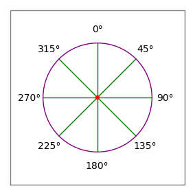 - The angles follow the compass convention — 0 degrees is up or "north", 90 degrees is to the right or "east" (Figure 2).