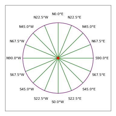 Figure 2: Compass rose- The commas in the above example are only meant to group the data pairs for the reader — they have no significance to the area computer's data parser.