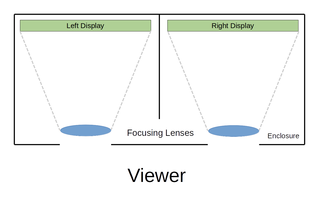 VR googles may be more expensive but produce better results than the above methods. In this method, the viewer uses a device with separate displays (or a single wide display like a cellphone) with one image for each eye: