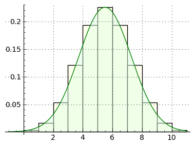 (10) pmf(k,n,p) = $ \displaystyle \frac{n!}{k!(n-k)!} p^k (1-p)^{n-k}$