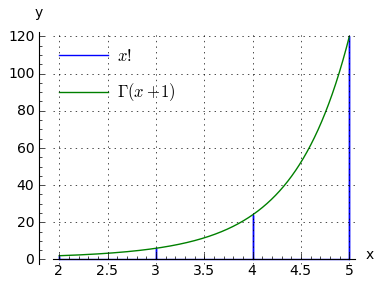 With respect to overflow issues, a factorial suffers from a number of problems, among which are that it's an integer — it would be more manageable if it could be made a floating-point value. The gamma function $\Gamma(x)$ does just that — it computes the factorials of both integers and non-integers, and places the results in the domain of the reals (Figure 4).