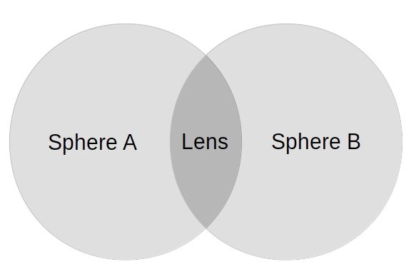 First, a basic idea about lenses — a common spherical lens can be mathematically analyzed as the intersection of two overlapping spheres (more on this topic in the advanced section below):