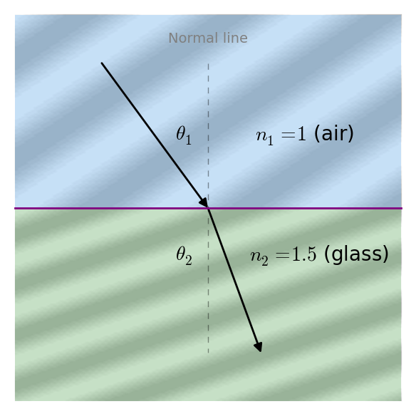 - $n_1, n_2$ = Unitless indices of refraction (IOR) in the respective media.