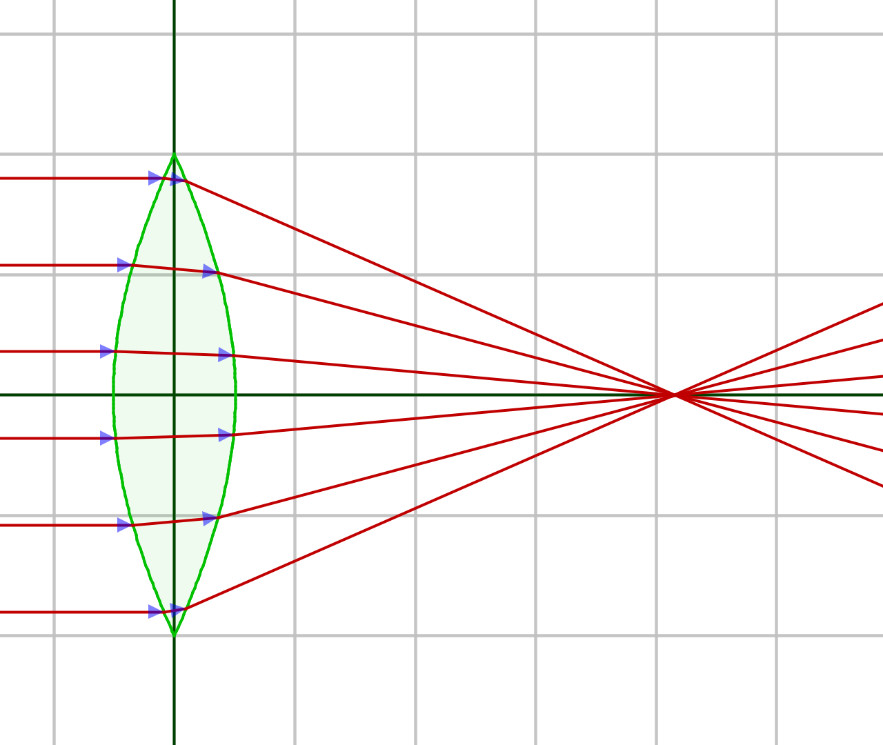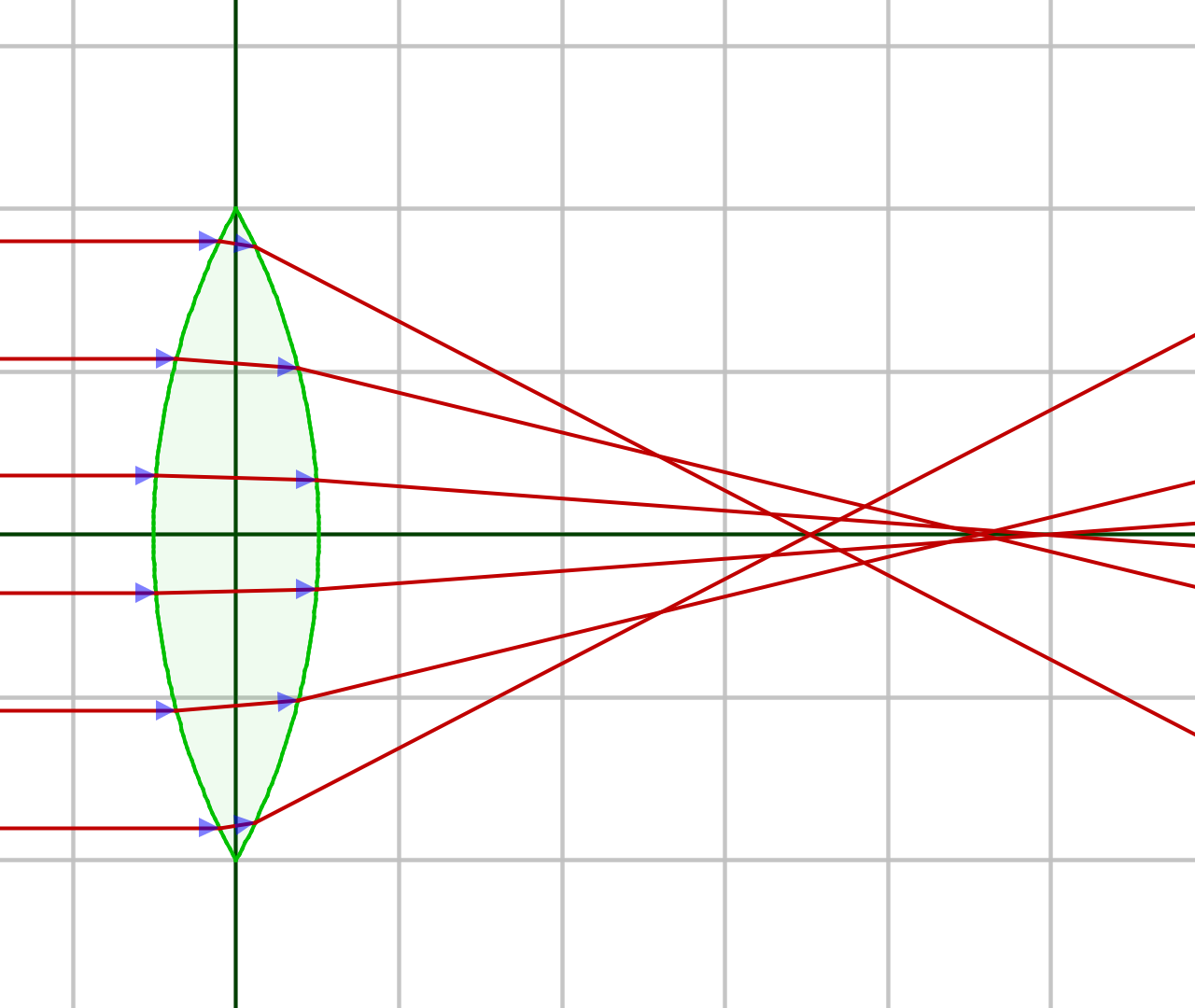 The point of the above comparison is to show that different parts of a spherical lens have different focal lengths, but a properly designed hyperbolic lens has the same focal length across its entire diameter.