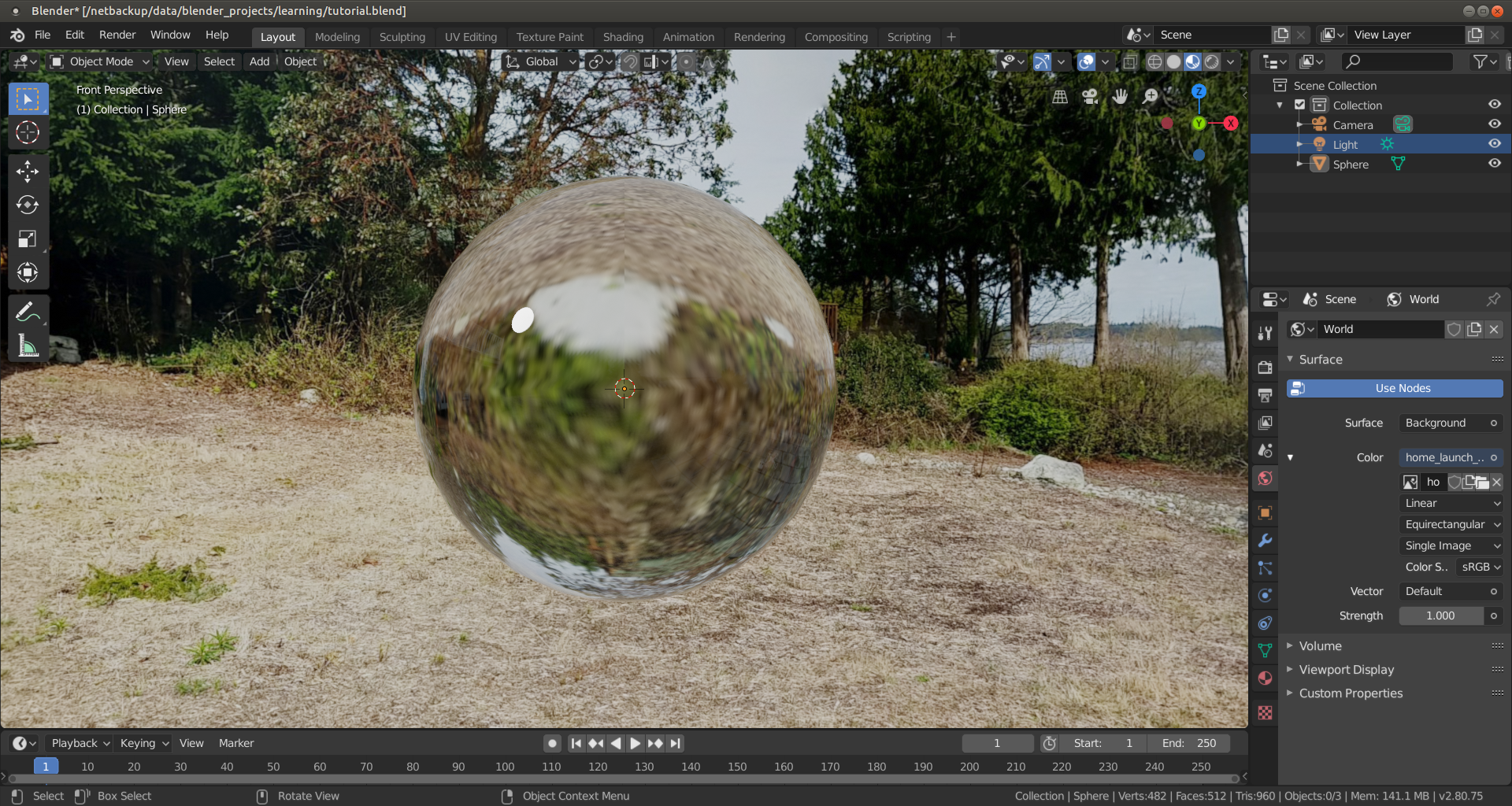 Having acquired an equirectangular background image, we need to put it in the Blender universe.