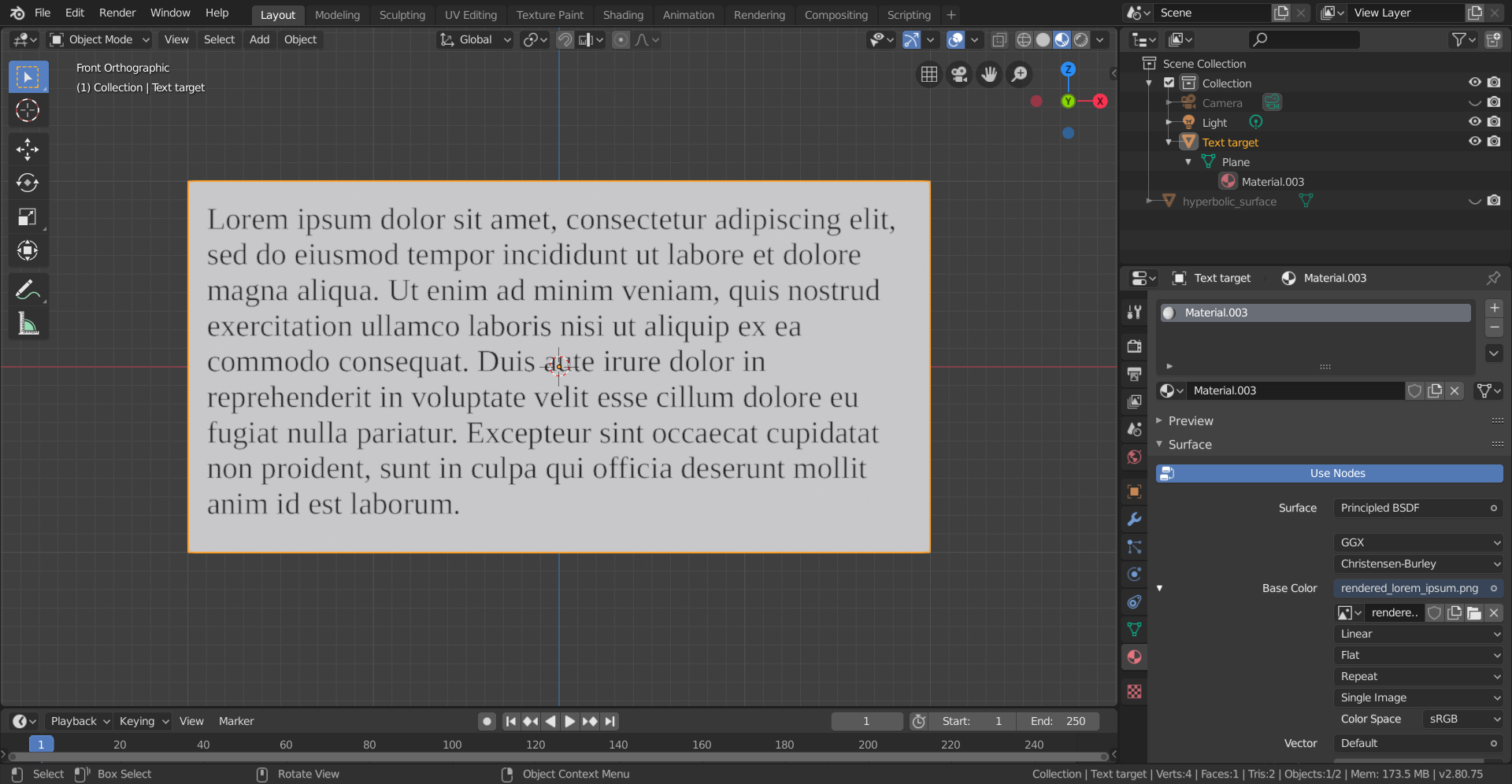 - The Blender "Cycles" rendering engine is accurate enough to support these kinds of tests (not true for "Eevee").