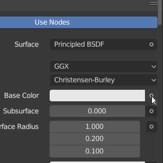 - In the list of properties, locate "Base Color" and a small circle to its right: