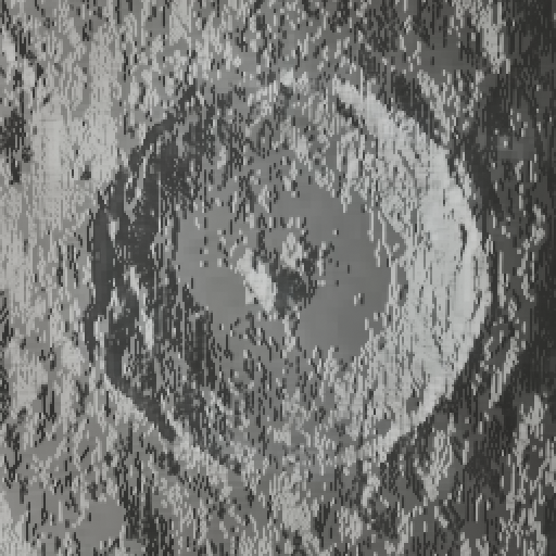 A different source is available for surface displacement, at this USGS Astrogeology site. These images are also in the public domain, so as above, I've processed the original, very large image available at the site (2 GB in size, therefore not included here) to more reasonable dimensions and file sizes: