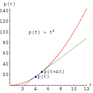 p(t) = t2. Our goal is to obtain a new function that is the derivative of this one, a function that provides velocities. We will use the notation