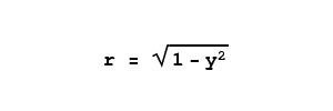 There is a relatively simple equation that creates a half-circle for an argument range between -1 and 1. This is ideal for our purpose, as we need to convert a vertical position within a sphere to a horizontal radius corresponding to that position. Here is the equation: