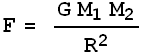 where F equals the force between two masses M1 and M2, R is the radius (distance) between the two masses, and G, the universal gravitational constant, is equal to 6.670 x 10-8 dyne cm2 gm-2. This formula gives the force between two masses at a particular instant of time. This formula is based on the work of Isaac Newton and is the basic equation in what is called "Newtonian Gravitation," gravitation in which relativistic effects are not taken into account.