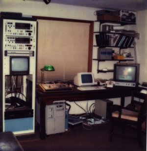 I already had a "personal computer" in my house, and it occurred to me that I could get the computer to talk to the house. After some hacking I worked out a way for the computer to issue instructions to the X-10 remote control, which in turn would activate various gadgets at arbitrary times. This was a far cry from an interactive environment — the computer talked but didn't listen — but I enjoyed the experiment anyway.