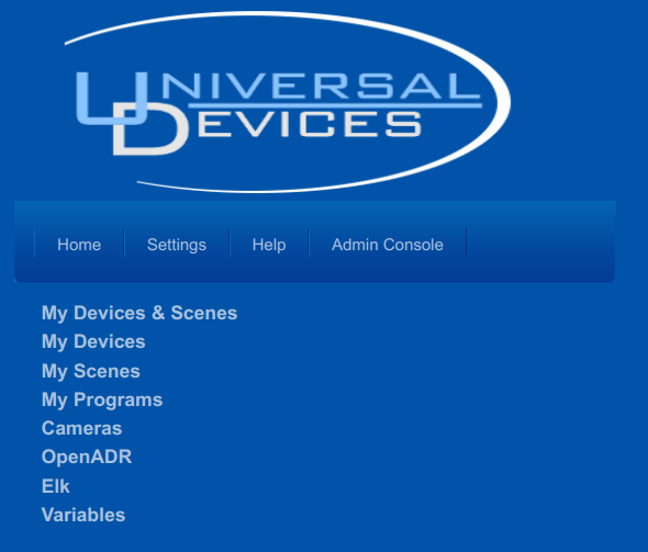 • Access the Web page of your Insteon-compatible hub as you have done in the past (this Web page should remain accessible in spite of Insteon's collapse). It should look more or less like this (image from my Universal Devices ISY-994i-pro):
