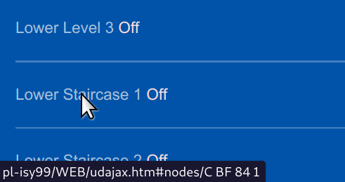 • See the characters "C BF 84 1" in the image above? (This is just an example, your data will be different.) For similar numbers you find on your network, ignore the "1" and add the "C BF 84" part to your list along with the friendly name of the control. Be sure to add a leading zero to address numbers that have only one digit — in this case you would enter "0C BF 84".
