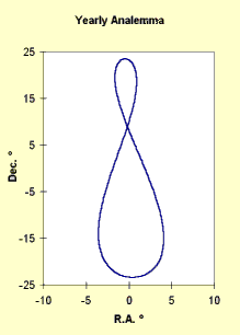 The third motion is a subtle change in the sun's noontime position, brought on mostly by the earth's axial tilt, but with a small additional component produced by the earth's non-circular (elliptical) orbit around the sun. Because of these seasonal motions, if a camera were to be set up and the shutter opened for a moment each noontime, over a year the film would record the image in Figure 1.