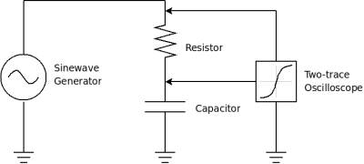 Okay, we now have a working embodiment of this equation, and it turns out this form has as many real-world applications as the earlier example. Here is another electronic example using an R-C circuit, but this time with a sinewave generator driving our circuit: