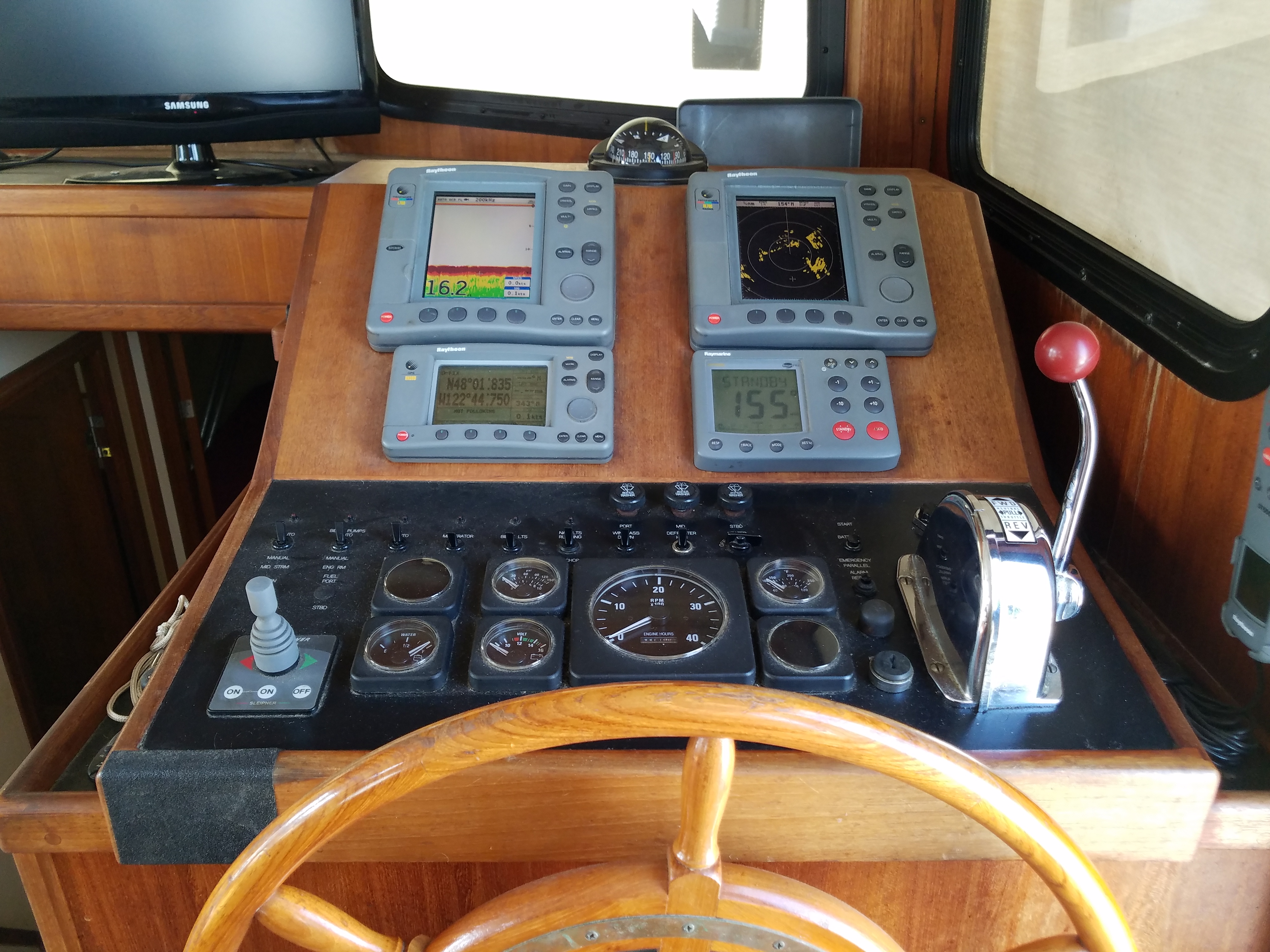 - Full instrument package: GPS, radar, depth sounder, wind meter, autopilot