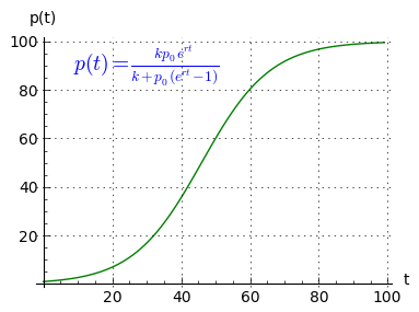 (3) $ \displaystyle p(t) = \frac{k p_0 e^{r t}}{k+p_0 (e^{r t}-1)}$