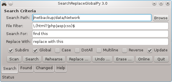Some readers may wonder whether a GUI-based application like SRG is not a bit of overkill — isn't it sometimes easier to write the shortest possible script to perform certain tasks? Well, yes, I agree, and because I offer the SRG source under the GPL, I encourage readers to examine its algorithms and extract the essence for dedicated, short, search and replace scripts.