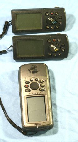 In this project I have managed to accommodate all the Garmin units I own (GPS III, GPS V and GPSmap76CS, photograph this page), but I can't speak for those units I have not personally sat with and bludgeoned into submission. All I can say is you won't get any assistance from Garmin — their published documentation is a testament to the triumph of narcissism over common sense. The communications interface is so difficult and baroque that even Garmin's own software won't function with many of their own GPS receivers.