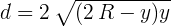 dcyl(y,R) = 2*sqrt((2*R-y)*y) render(d == dcyl(y,R),"equ_dia_cyl.png","large")(1)Where:![]()